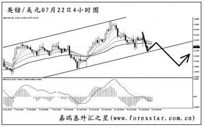 ▲歐元兌美元未能有效站穩(wěn)在1.3000的整數(shù)關(guān)卡上方,自高位逐步回落。圖中的上升通道下沿處同時(shí)還有均線系統(tǒng)的依托,但匯價(jià)仍然將其跌破,預(yù)示短線的空頭動(dòng)能強(qiáng)勁。歐元還將會(huì)有一波上調(diào),但力度料將有限,后市將首先向1.2520一線的支撐挺進(jìn)。
