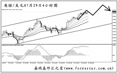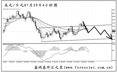 ▲美元兌日元圖中形成了一個(gè)旗形中繼的雛形,上沿被小幅穿越,但還不能完全說(shuō)明此形態(tài)已經(jīng)失敗。中長(zhǎng)線上保持了良好的跌勢(shì),所以短線做空的風(fēng)險(xiǎn)較低。現(xiàn)重點(diǎn)關(guān)注旗形上沿的阻力有效性,預(yù)計(jì)匯價(jià)還會(huì)再度上探一次,此后逐步向圖中低點(diǎn)挺進(jìn)。