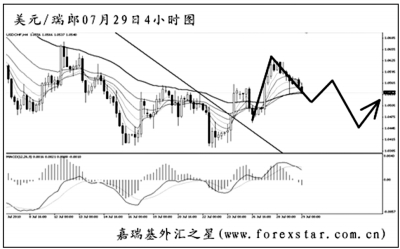 ▲美元兌瑞郎此前4小時(shí)圖中發(fā)生了一連串的MACD底背離信號(hào),空頭動(dòng)能持續(xù)減弱。目前匯價(jià)已將包含背離點(diǎn)的下降趨勢(shì)線升破,預(yù)計(jì)后市將發(fā)生一波較為明顯的反彈。美元兌瑞郎的風(fēng)險(xiǎn)在于重新下探一次前方低點(diǎn)1.0400一線,但再創(chuàng)新低的希望已經(jīng)不大。