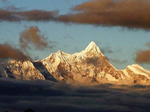 南迦巴瓦曾經(jīng)被中國國家地理評為中國最美的雪山之一,位于西藏南部林芝地區(qū)雅魯藏布江大拐彎附近,是喜馬拉雅山東端最高峰,海拔7756米。高度排在世界最高峰行列的第15位,是7000米級南迦巴瓦山峰中最高的。巨大的三角形峰體終年積雪,云遮霧蓋,難以見其真容。南迦巴瓦峰也叫那木卓巴爾山,藏語意為“天上掉下來的石頭”,有“眾山之父”之稱。 雅魯藏布江自喜馬拉雅山脈西段的冰峰雪山發(fā)源,沿喜馬拉雅北坡山谷一直向東,歷程l000多公里,流至喜馬拉雅山脈東段尾翼,在林芝、米林、墨脫、波密四縣交界處直轉(zhuǎn)南下,形成一個馬蹄形大峽灣。南迦巴瓦位大峽灣內(nèi)側(cè)。南側(cè)直接面對印度洋,暖濕的西南季風(fēng)可沿雅魯藏布江北上,使本地又受到海洋性氣候影響。高峰峽谷、充沛的降水和溫暖的氣溫,為自然地理的垂直分帶提供了良好的條件。谷底的雅魯藏布江畔是大片濃蔭遮日的熱帶雨林,循著山坡往上,是各種闊葉樹相互參差。雪線以上則是一片冰清玉潔?梢院敛豢鋸埖卣f,南迦巴瓦峰地區(qū)是一個地跨熱帶和寒帶,不可多得的“自然博物館”。 南迦巴瓦地區(qū)雨季較長,一般從5月延續(xù)至9月,同時云量也很大,峰體終日云霧繚繞。在秋冬季節(jié)為旱季,晴天多,雨天少,更容易讓神山揭開面紗,展露出來。但人們都說看雪山是要有緣的,像梅里、珠峰……常只有有緣人才能有幸目睹真容。在這個夏天,踏上這片雪域高原,去看看神山的面容吧。