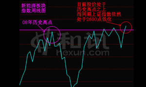 從新能源板塊走勢圖(流通股本為權(quán)重)中可以看出,目前股價已經(jīng)處于08年歷史高點支撐,且呈突破走勢,同期股指仍處于2600點附近,因此這個版塊是剛剛解放了歷史套牢籌碼,后面震蕩消化套牢盤與獲利盤后,仍有繼續(xù)向上拓展空間可能。