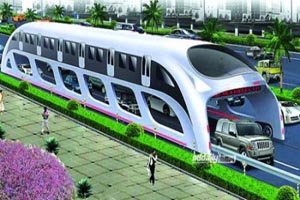 | 立體快巴示意圖 | 近日,美國《外交政策》雜志盤點(diǎn)了世界五大交通最差城市,分別是:俄羅斯的莫斯科、墨西哥首都墨西哥城、巴西圣保羅、尼日利亞的拉格斯,還有一個(gè)是中國北京。 環(huán)顧世界各大城市的發(fā)展歷程,大都經(jīng)歷了交通從暢通到擁堵的過程,目前還沒有哪個(gè)城市完全解決了道路交通的擁堵問題,這已經(jīng)成為一個(gè)世界性的難題。在現(xiàn)有的交通工具里,地鐵造價(jià)太高,快速公交BRT占道,那么解決這個(gè)頑癥,到底有沒有良方呢? 也許在不久的將來,城市駕車人不用再擔(dān)心龐大的公交車堵住道路和視線,因?yàn)槟憧梢宰杂傻貜乃鼈兌亲酉麓┬?毫發(fā)無損。這種所謂的“立體快巴”系統(tǒng)模型,最近在第十三屆北京科博會(huì)上首次亮相了。 這聽起來非常科幻的“立體快巴”到底長什么樣?它猶如裝了“高蹺”的公交車,每輛“立體快巴”分為4節(jié),每節(jié)長10米。車體底層高度為2.2米,總高度4.4到4.5米,車身“增肥”至兩條車道寬,這樣車體下面的空間就能并行兩輛小汽車,形象一點(diǎn)說:“立體快巴”就像空中“劈腿”小地鐵或者輕軌,跨越在機(jī)動(dòng)車道的上空行使。 “立體快巴”更像是一個(gè)橫跨在機(jī)動(dòng)車道上空運(yùn)行的“大罩子”,“立體快巴”聽來的確很新穎,但是可行性到底有多大呢?帶著諸多疑問,昨晚《新聞縱橫》值班編輯李揚(yáng)采訪了“立體快巴”的發(fā)明者——深圳華世未來泊車設(shè)備有限公司的負(fù)責(zé)人宋有洲。