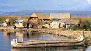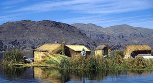 600多年前,為逃避西班牙和葡萄牙的殖民統(tǒng)治,烏魯斯族人來到蘆葦叢生的湖上,依湖而居,從此成為這里的主人。 起初的烏魯斯人,用蘆葦、蒲草編成厚實(shí)的蘆席和蒲席,再編成草船,在船上生活。后來,他們把幾條、十幾條草船連在一起,成為更穩(wěn)定的住所,浮島就這樣出現(xiàn)了。隨后,他們又編出了精巧的房屋,F(xiàn)在,湖上的浮島有60多個(gè),小的有籃球場那么大,大的竟設(shè)有郵局、小學(xué)等公共設(shè)施。 踏上秘魯?shù)牡目系母u,你會感覺天是那樣近。腳下松軟的蘆葦蒲,不時(shí)發(fā)出“吱吱”聲,訴說著在此繁衍生息幾百年的烏魯斯人的故事。湖面波光粼粼,穿著五顏六色民族服裝的土著,是島上最鮮活的景物。