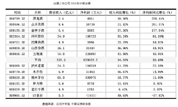海通證券對白酒上市公司的中報(bào)進(jìn)行分析稱,上半年白酒上市公司收入利潤合計(jì)增速維持高位,主要在于2009年上半年基數(shù)較低:13家白酒上市公司上半年實(shí)現(xiàn)收入257.5億,同比增長34%,其中一季度收入增長35%,二季度收入增長33%,上半年實(shí)現(xiàn)凈利潤83億,同比增長30.7%,其中一季度凈利潤同比增長28%,二季度凈利潤增長34.5%。 報(bào)告預(yù)計(jì)今年下半年白酒企業(yè)收入將逐步放緩至平穩(wěn)狀態(tài)10%左右,但下半年合計(jì)凈利潤增速仍將維持高位,同比增長將達(dá)約35%左右。預(yù)計(jì)全年13家白酒上市公司合計(jì)收入和凈利潤增速分別為19%和29%左右,這個增長速度仍舊足以讓白酒股獲取超額收益。從6—7月份高檔白酒終端零售價(jià)的普漲來看,估計(jì)很多白酒公司三季度的發(fā)貨量將得到可靠保障,經(jīng)銷商補(bǔ)庫存的過程可能將一直延續(xù)到明年春節(jié)。 海通證券認(rèn)為,上半年白酒企業(yè)凈利潤增速低于收入增速主要是因?yàn)橄M(fèi)稅率提高了2—3個百分點(diǎn),但下半年翹尾因素逐步減弱,凈利潤增速將逐步恢復(fù)。中國政府從2009年下半年開始提出從嚴(yán)增收消費(fèi)稅,而公安部門也在去年底從嚴(yán)打擊酒駕,并于今年4月份嚴(yán)格規(guī)范交通法。中長期來看,無論是酒精飲料的消費(fèi)稅,還是其他行政、法律,對酒精飲料消費(fèi)的限制力度都會提高。中長期來看,“少喝酒、喝好酒”是大勢所趨,白酒業(yè)中長期產(chǎn)品結(jié)構(gòu)調(diào)整仍將深化。