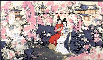 面值2元的《紅樓夢(mèng)》小型張,最新價(jià)已高達(dá)1300元。資料照片 |
