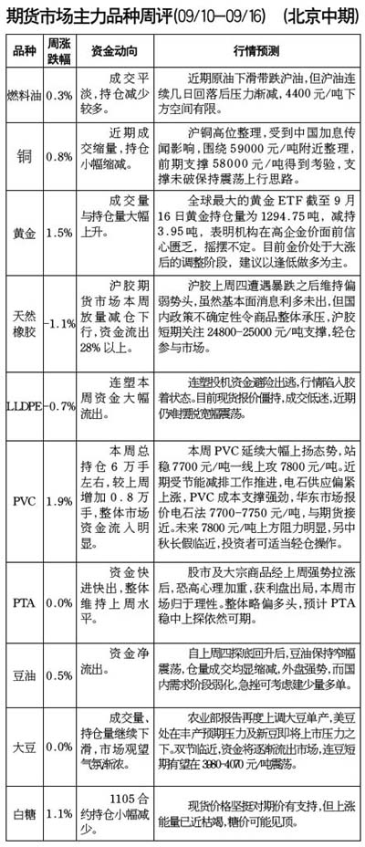 期貨市場(chǎng)主力品種周評(píng)[09.10-09.16]