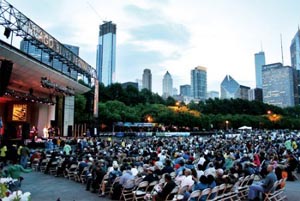 每年夏天,芝加哥年度性的音樂(lè)節(jié)也很多,為期3天的芝加哥藍(lán)調(diào)音樂(lè)節(jié)(Chicago