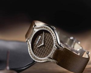 其實Beluga系列從1985年誕生到現(xiàn)在已經(jīng)有著很長的一段生產(chǎn)歷史了。這次的“巧克力”系列女士腕表表盤由18K白金制造而成,寬37.5毫米,在表盤的外部用68顆珍貴的寶石鑲嵌,與表的顏色一致。