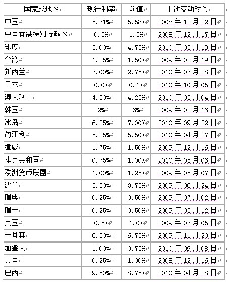 附表二:主要國家利率變動表