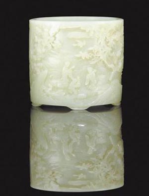| 清乾隆白玉筆筒 |