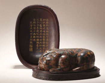 今年6月,在北京保利5周年春拍古董珍玩專場上,清乾隆“乾隆御用”御題詩澄泥伏虎硯及紫檀蓋盒以1400萬元成交,打破硯臺拍賣世界紀錄。今年5月,在中國嘉德2010春拍“翦淞閣——文房清供”專場上,清康熙御制松花石龍馬硯以425.6萬元高價成交,同樣引人注目。