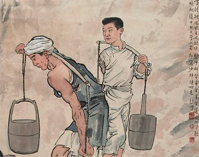 徐悲鴻《巴人汲水圖》創(chuàng)作于1938年抗日戰(zhàn)爭時期,是一幅真實記錄民眾階層生存景象的藝術珍品,被譽為徐悲鴻最具人民性和時代精神的代表作。