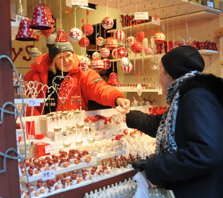 在瑞典首都斯德哥爾摩老城的“大廣場”上,有一個非常有名的圣誕市場,每年從11月22日開市,一直延續(xù)到平安夜前一天的12月23日。這個瑞典最古老的圣誕市場已有數(shù)百年歷史,至今仍然保持著中世紀(jì)風(fēng)格。這里不僅周邊環(huán)境傳統(tǒng)氣息非常濃郁,而且銷售的均為傳統(tǒng)的圣誕節(jié)用品,其中許多用品已在瑞典流傳了數(shù)百年。每年圣誕節(jié)來臨之前,不僅前來購物的當(dāng)?shù)鼐用窠j(luò)繹不絕,還有不少游客慕名而來領(lǐng)略這個古老市場的風(fēng)采。記者 吳平/斯德哥爾摩報道