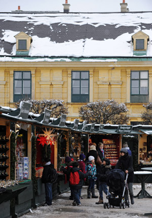 每年11月中旬,奧地利首都維也納市內(nèi)的20處大大小小的圣誕市場陸續(xù)開放,并一直開放至圣誕節(jié)前后,早早為整個城市營造節(jié)日氣氛,也成為市民和游客冬季休閑好去處。圖為孩子們在美泉宮圣誕市場游玩、購物。美泉宮坐落在維也納的西南部,曾是哈布斯堡王室的夏季行宮,總面積2.6萬平方米。這座氣勢磅礴的巴洛克風(fēng)格宮殿和花園,如今是維也納最負(fù)盛名的旅游景點。美泉宮及其花園已被聯(lián)合國教科文組織列入《世界文化遺產(chǎn)名錄》!