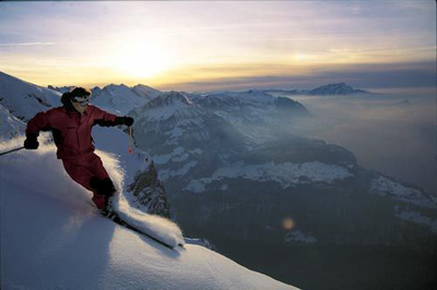 阿爾卑斯山將瑞士造就成了一個(gè)滑雪天堂,故有“滑雪故鄉(xiāng)”之稱。到瑞士旅游,滑雪運(yùn)動便是最受游客歡迎的娛樂項(xiàng)目之一。