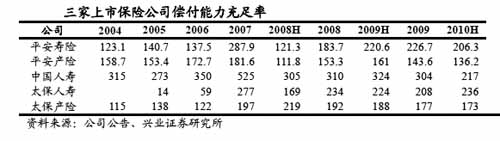 然而興業(yè)證券并不認(rèn)為這會(huì)成為保險(xiǎn)股2011年走強(qiáng)的障礙。該券商表示,當(dāng)前中國(guó)人壽和中國(guó)平安、太保壽險(xiǎn)業(yè)務(wù)償付能力充足率均在200%多的水平,平安產(chǎn)險(xiǎn)和太保產(chǎn)險(xiǎn)償付能力充足率則維持在150%左右的水平,如果三家公司僅為滿(mǎn)足監(jiān)管要求,將產(chǎn)壽險(xiǎn)償付能力充足率保持在150%,則三家公司當(dāng)前資本水平足以支撐未來(lái)2-3年業(yè)務(wù)的發(fā)展。但結(jié)合各家公司歷史償付能力水平和公司發(fā)展的需要,我們認(rèn)為平安和太保產(chǎn)壽險(xiǎn)償付能力充足率水平分別維持在150%和200%較為合理,中國(guó)人壽則可能在250%以上,據(jù)此計(jì)算,中國(guó)平安在2011年有融資需要,如果考慮未來(lái)4-5年的發(fā)展,融資規(guī)模預(yù)計(jì)在400-500億元,太保和國(guó)壽近期沒(méi)有融資需求。