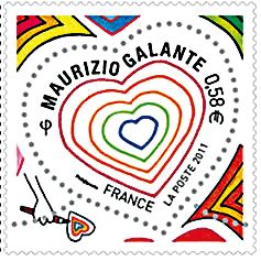 此次提前發(fā)行的法國情人節(jié)心形郵票,由服裝設計師MaurizioGalante根據(jù)其服裝定制精神打造,主題為“colorie-moi”(給我上色),可謂迄今為止情人節(jié)郵票里顏色最豐富、最別出心裁的一款了。