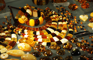 看畢這些大自然的杰作,我來到博物館的商店,這里有被加工成各種各樣飾品的琥珀出售。琥珀飾品雖然沒有黃金的耀眼、鉆石的璀璨,卻別有一番含蓄的自然美,帶有幾分神秘色彩。琥珀不但是時(shí)間的象征,而且它顏色橙黃透明,在接近火的時(shí)候顏色還會(huì)發(fā)生變化,非常奇特,再經(jīng)過能工巧匠的精雕細(xì)琢,就有了造型完美、光滑圓潤(rùn)的琥珀成品。