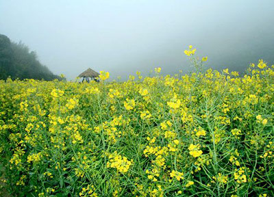 在海拔1000米的石灶天池上的石門國家森林公園里,有著被譽(yù)為廣東第一高山的油菜花海。上百畝的油菜花田,綿延了將近兩公里。微風(fēng)吹來,漫山遍野的金黃色如波浪翻涌,在茂密森林和天然河谷的映襯下,構(gòu)成一幅心曠神怡的田園風(fēng)光圖。今年公園更新設(shè)了獨(dú)特的“梯田油菜花”,站在頂端之上,一級級交錯(cuò)的油菜花海就在腳下,仿如一本立體的燙金畫冊。
