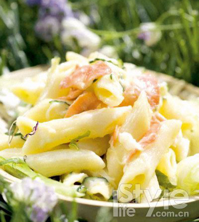 1.將面條用加些鹽和橄欖油的開水煮熟后用涼水過一下。2.在不粘鍋中放些黃油,