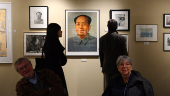 在展銷(xiāo)會(huì)上,除了來(lái)自中國(guó)的玉壺畫(huà)廊展銷(xiāo)呂厚明的“紅色經(jīng)典”、胡武功的“西北紀(jì)實(shí)”和姜一鳴的“當(dāng)代影像”外,還有來(lái)自華盛頓的伽里?愛(ài)德華茨(GaryEdwards)畫(huà)廊展銷(xiāo)由新華社陳石林大師制作的毛主席標(biāo)準(zhǔn)像。