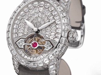 陀飛輪高級珠寶表,密鑲287顆長方鉆(共約20克拉),不但挑選鉆石的準則極為嚴格,每顆鉆石的切割、修飾及鑲嵌皆講求精準,每一枚 Cat’s Eye