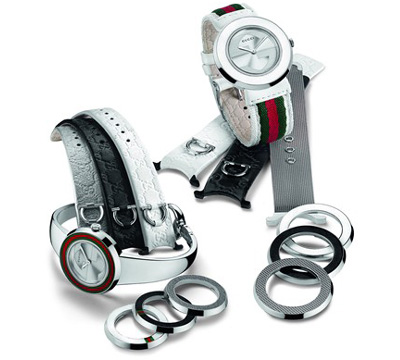 U-Play的Guccissima表款搭配Guccissima皮革和裹皮表圈,是晚間或休閑時光的理想之選,也可與其它U-Play套件互換。Guccissima表款精選黑色、白色或銀色小牛皮三種版本,可隨性搭配任何服飾。