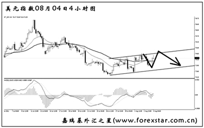 日本央行也在8月央行會議上一致維持0-0.10%的利率水平不變,并將量化寬松規(guī)模由10萬億日元提升至15萬億日元。日本央行表示,全體委員一致決定擴大量化寬松,經(jīng)濟面臨的不確定性仍然很高,對日本經(jīng)濟的下行風(fēng)險需要更加謹(jǐn)慎,維持物價穩(wěn)定則需要更長的時間。日本央行同時表示,歐元區(qū)債務(wù)問題的緊張形勢仍然存在,對美國經(jīng)濟前景的謹(jǐn)慎情緒升溫,市場仍擔(dān)憂美國的債務(wù)問題。該利率決議公布后,美元兌日元強力突破4小時圖壓力線,短線上漲幅度一度超過了200點。