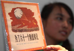 全國連環(huán)畫拍賣會日前在北京潘家園舊貨市場展覽大廳舉行。在上世紀(jì)五十年代至八十年代出版的近300本(套)連環(huán)畫小人書拍賣活動中,由人民美術(shù)出版社六十年代出版、華三川等人創(chuàng)作的“大眾畫庫一套”41本連環(huán)畫小人書拍出22萬元高價。 圖為工作人員在展示介紹連環(huán)畫《為了六十一個階級弟兄》。