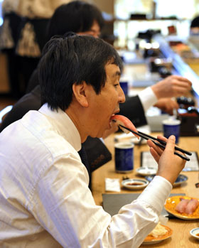 提起壽司,人們可能首先想到的是便利快捷的回轉(zhuǎn)壽司。其實(shí),盡管回轉(zhuǎn)壽司在日本已相當(dāng)普及,但在很多老江戶人心中,更有分量的不是傳送帶運(yùn)上來(lái)的一盤盤流水線產(chǎn)品,而是有家傳絕招的老師傅用心一個(gè)個(gè)捏出來(lái)的壽司。