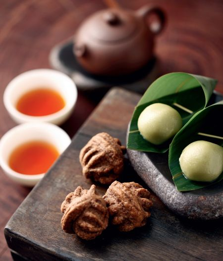 茶食在口味上可甜可咸,重要的是與茶能相互協(xié)調(diào),不能奪了茶的主角地位。普洱茶中經(jīng)常會(huì)出現(xiàn)類似紅棗、栗子、果仁等香氣,因此不妨挑選含有棗泥或以栗子為原料做成的點(diǎn)心,這些顏色偏深沉的食材,味道也是屬于秋冬季節(jié)的。除此之外,還可以準(zhǔn)備一些堅(jiān)果,食用方便,也適宜配茶。