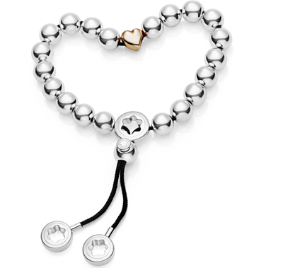自古以來,珍貴的銀器吉祥物便成為戀人間的愛意象征。造工精美的吉祥物護(hù)身符暗藏愛侶間的盟誓,而女方隨身佩戴,更見情義之重。2012年,萬寶龍(Monblanc)特別打造情人節(jié)銀珠手鏈(Valentine’s Bead Bracelet)。手鏈以黑線串起一顆顆亮澤銀珠,之中獨(dú)有一顆玫瑰金心形綴飾,造型優(yōu)雅婉約,做工考究。兩種材質(zhì)色澤質(zhì)感對比鮮明,符合喜愛金銀兩色的女士的喜好。該手鏈限量500條,各有獨(dú)立編號。