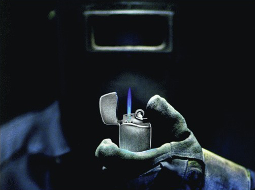 在打火機的內(nèi)部,有一個Zippo享有專利權(quán)的兩階段燃燒器系統(tǒng)能噴射出細微而長時間的藍橙色火苗。蓋子打開,啪的一聲關(guān)上,熟悉的咔嗒聲帶回了所有使用過Zippo打火機的人們的記憶。