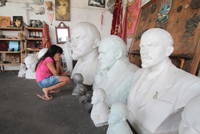 烏克蘭首都基輔的一家再生資源工廠利用在回收“原料”中發(fā)現(xiàn)的產(chǎn)于1889年的鋼琴、二戰(zhàn)紀念章、二戰(zhàn)紀念幣、銅茶壺、列寧像、熨斗、老照片、老相機、留聲機、老式縫紉機、織布機等被市民不經(jīng)意丟棄的廢物創(chuàng)辦了一座古董博物館,吸引了不少當?shù)厥忻袂叭⒂^。圖為一名小姑娘蹲在列寧像前認真觀看;o分社發(fā)