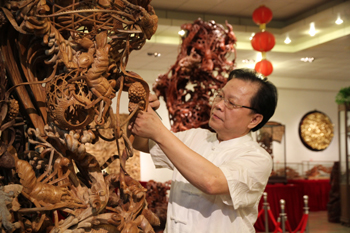 “學(xué)會(huì)欣賞一件好的工藝美術(shù)作品也能給人帶來(lái)幸福感。”在廣東省潮州市湘橋區(qū)一條古巷里,一邊觀看用花梨木、小葉紫檀、樟木雕刻的栩栩如生的傳統(tǒng)金漆木雕《龍蝦蟹簍》以及近代革命題材的《碧血黃花》,一邊聽中國(guó)工藝美術(shù)協(xié)會(huì)理事會(huì)理事、高級(jí)工藝美術(shù)師辜柳希介紹他創(chuàng)作及收藏的潮州木雕、潮繡精品,記者流連忘返。