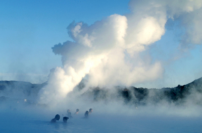 離北極最近的國家是冰島,在那兒似乎能感覺到另外一個(gè)世界。冰島首都雷克雅未克小而精致,環(huán)境整潔,具有異域海邊小城的氣息,成片的小洋樓突現(xiàn)北歐風(fēng)情,綠色的草坪蔥蔥郁郁,藍(lán)色的海洋一望無際?沙鞘幸酝獯箨憶]有一塊農(nóng)田,也看不見任何莊稼,后來才知道,除了首都雷克雅未克,那塊大陸寸草不生,荒無人煙。一路上,只見綿綿山脈、原始河流、類似戈壁又不是戈壁的荒原,還有在大地上彎彎曲曲伸展著的公路。穿梭于公路之間,仿佛到了另外一個(gè)星球。冰島是個(gè)多火山國家,地?zé)豳Y源十分豐富,因此造就了冰島非常著名的溫泉——藍(lán)湖。很多游客尤其是歐洲的游客都慕名而來,為的是泡一泡不同于一般意義的天然溫泉。藍(lán)湖的溫泉之所以著名,是因?yàn)樗锹短斓臏厝,即便是飄雪的冬季,由于地?zé)嶝S富,游客依然可以享受溫暖的溫泉。贿有火山的原因,地層中的礦物質(zhì)沉積在湖底,形成了白色的溫泉泥,涂抹在臉上身上具有美容健體的作用。