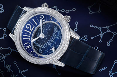 新款腕表無疑是一款完美的天象觀測儀,為了淋漓盡致地展現(xiàn)天象主題,表盤還設置了星座日歷,月份指示與星座全年對應,通過年歷來調節(jié)顯示系統(tǒng)以及時間測量。該腕表搭載Jaeger-LeCoultre