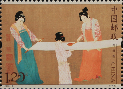 4月13日在河北省邯鄲市郵政局拍攝的《搗練圖》特種郵票(之三)。