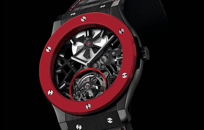 Watch摩納哥紅致敬——HUBLOT宇舶表全球首創(chuàng)明亮的彩色陶瓷材質(zhì),呈獻(xiàn)與黑色或白色陶瓷一樣高質(zhì)的亮紅色陶瓷腕表“紅與黑鏤空陀飛輪”,也是一項(xiàng)申請(qǐng)國(guó)際專(zhuān)利的腕表。