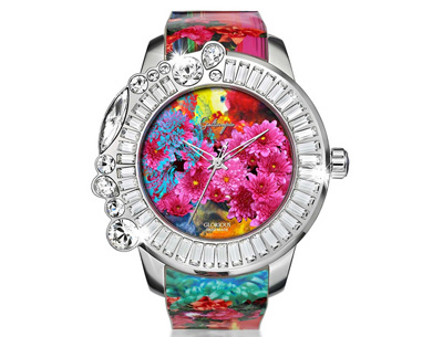 「Glorious 夢幻花都」系列帶來了花團(tuán)錦簇的景象之余,又不失時(shí)尚格調(diào)。表面千變?nèi)f化的色調(diào)配上閃亮銀或炫酷黑的表殼,旁邊以Galtiscopio 招牌「GP