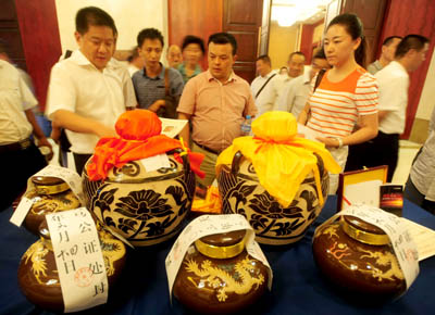 近日,在甘肅蘭州舉行的一場(chǎng)文物藝術(shù)品拍賣(mài)會(huì)上,甘肅武威武酒集團(tuán)在上世紀(jì)50年代到90年代生產(chǎn)的45壇老酒在拍賣(mài)會(huì)上以342.6萬(wàn)元的價(jià)格成交,其中一壇封存于1953年的10公斤武威糧白酒以10萬(wàn)元起價(jià),最終以156.8萬(wàn)元的高價(jià)成交。