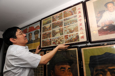 現(xiàn)任中國名家書畫研究院副院長的程宸,是我國著名的紅色收藏大家,他從上學集郵到現(xiàn)在的紅色收藏已有39個年頭了。多年來,他收藏紅色藏品和有關毛澤東的像章、書刊、宣傳畫、瓷像、郵品、繡品、油畫等達20多萬件。
