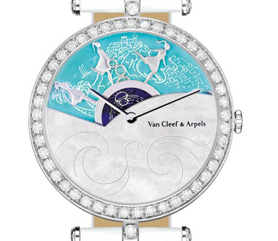 Arpels(梵克雅寶)的詩意復(fù)雜功能系列腕表。梵克雅寶的腕表早已超越了單純的對(duì)審美的追求和技術(shù)創(chuàng)新的范疇,她總是能以浪漫動(dòng)人的創(chuàng)想巧妙的詮釋時(shí)間之美,這種詩意的詮釋已成為梵克雅寶的真正標(biāo)志,沒枚腕表的設(shè)計(jì)均力求將這種詩意變?yōu)榭梢暤乃囆g(shù)品,向人們?cè)V說著如夢(mèng)似幻的動(dòng)人故事。