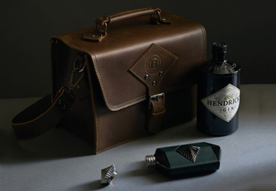 禮品套裝中除了隨身酒瓶,還包括一瓶亨利爵士金酒、手工制作的皮革旅行包、一款由蘇格蘭裁縫師Walker