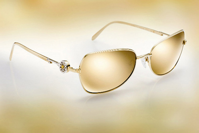 Spectacular太陽眼鏡由18K黃金打造而成,鏡框共鑲嵌了8顆鉆石,兩邊鏡臂上分別飾有一個白金Tiffany