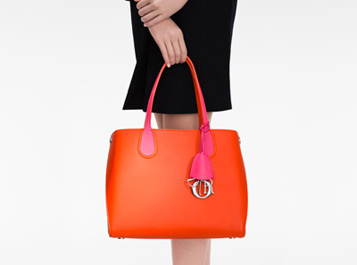 這款手袋著重于色彩的組合,所有顏色皆精心挑選搭配。兩片撞色的皮革互相粘和,或補(bǔ)色或?qū)Ρ,搭配出各種摩登變化。手提袋上標(biāo)志性的
