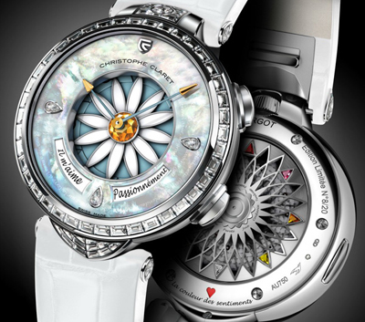 Claret的愿望,由此創(chuàng)造出了一款同時(shí)擁有迷人外觀和復(fù)雜制技的腕表來達(dá)到女人們的終極訴求。Margot通過制表絕技,將對(duì)真愛的美麗抒發(fā)轉(zhuǎn)換成了多情的花瓣宣言。