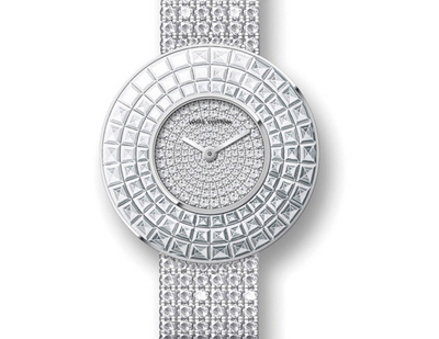 Absolu Riviere腕表則把珠寶工藝進(jìn)一步極致發(fā)揮,不僅僅是面盤(pán),連指針以及表鏈都鋪上了明亮切割的鉆石。