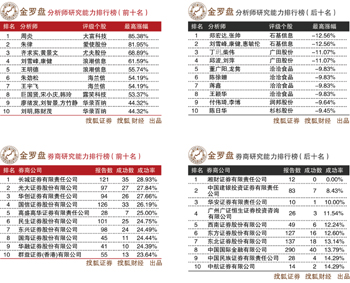 金羅盤5月券商研究能力排行榜顯示,該月位列榜單前十的券商,薦股成功率集中在23%至28%。這一成績(jī)只能勉強(qiáng)進(jìn)入4月券商能力排行榜后十名的位置。