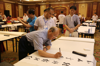 這次書畫筆會邀請到的將軍書畫家們都是征戰(zhàn)沙場、為共和國立下豐功偉績的英雄,他們的書畫作品書寫了壯麗的祖國河山,弘揚了中華民族偉大復興的中國夢。他們懂軍事、懂政治、懂藝術(shù),將書畫藝術(shù)推向了一個高度。在和平年代將軍們將自己對祖國的熱愛融入到書畫藝術(shù)中,與戎馬倥傯之余,將書畫當作無言的詩,無言的字,無言的音樂,為中國革命和建設譜寫了一副又一副壯麗篇章。他們用書畫謳歌我們的黨和國家,對人民進行愛國主義教育;他們將書畫作為與廣大官兵溝通的渠道,拉近情感的紐帶,心系官兵,情撒軍營,為提高官兵的軍事素質(zhì)和文化素質(zhì)做出了重大的貢獻。他們海將書畫作為生活的一部分,陶冶情操,提高情趣,構(gòu)建和諧社會,以自己的革命精神、高尚人品為我們樹立了光輝的榜樣。將軍們的書畫造詣之高、氣勢之大、字體之雄,堪稱一絕,書畫優(yōu)美、內(nèi)容豐富,情真意切,聯(lián)通他們的豐功偉績和崇高精神,是當代精神文明的一面鮮艷旗幟,弘揚了革命軍人愛國主義的精神。